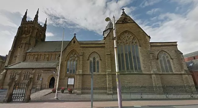 The dog, who is a Staffie cross, was discovered by worshipers after the homeless person in question tied him to the altar of a church in Blackpool.