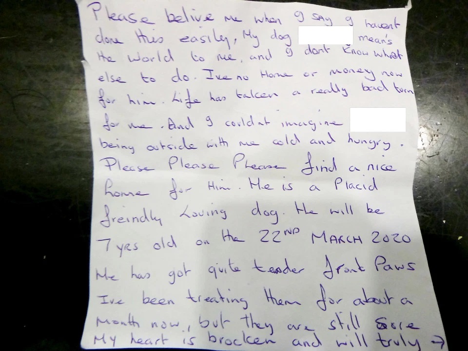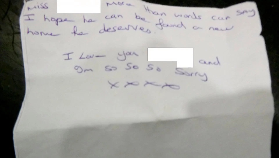 “Please believe me when I say I haven’t done this easily. My dog means the world to me and I don’t know what else to do,” the heartbreaking note read.