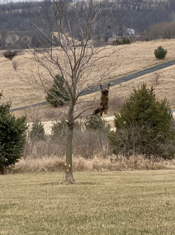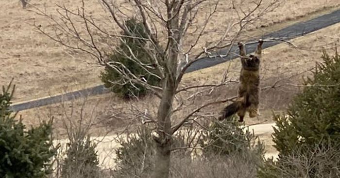 This Reddit user was worried when they could not find their cat but as they look out of their window, they noticed it hanging on a tree. The unique photo collected 115k upvotes.