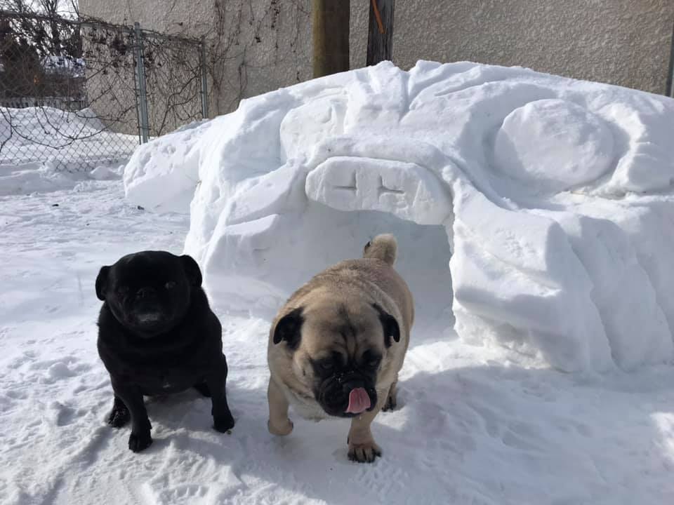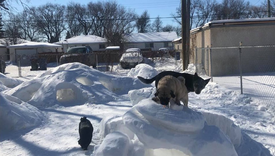 As Mr. Einarson added, creating tunnels underneath the sheets of snow not only made it fun for his dogs to run through but also made cleaning poos easier.