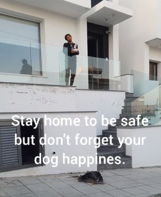 “5th day quarantine. Stay home safe but don’t forget your dog’s happiness,” Vakis captioned his video.