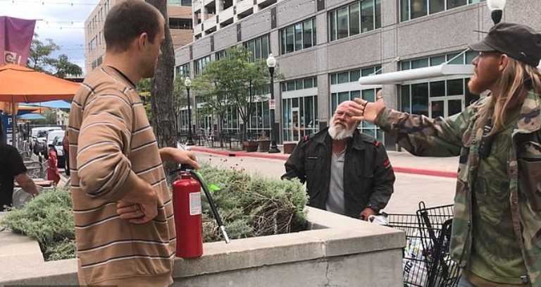 The man smoking, Jon Bird, shared the video of the incident that happened near the Gallivan Center in Salt Lake City in Utah.