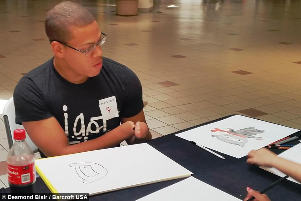 Desmond Blair who is twenty-nine years of age has no fingers He hails from Dallas Texas. Desmond is born without fingers and his all ten fingers are missing. But an amazing thing is Desmond is a painter.