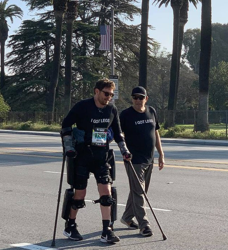 A paralyzed man has completed 17.2 miles of the Los Angeles Marathon with the help of his state-of-the-art $95,000 exoskeleton.