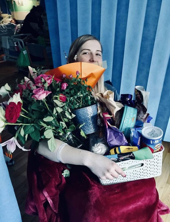 Surgeons managed to repair her artery with a stent but the clot in her brain couldn’t be cleared. They believe it will eventually dissolve.