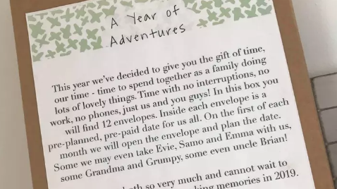 The letters have a family date planned inside them that will include the grandparents of the kids, their cousins, and their uncle too.