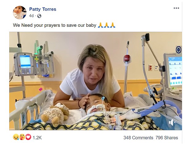 The hospital said that the child has had no blood flow to his brain and is legally dead according to Texas law, and had ‘developed progressive signs of organ failure.’