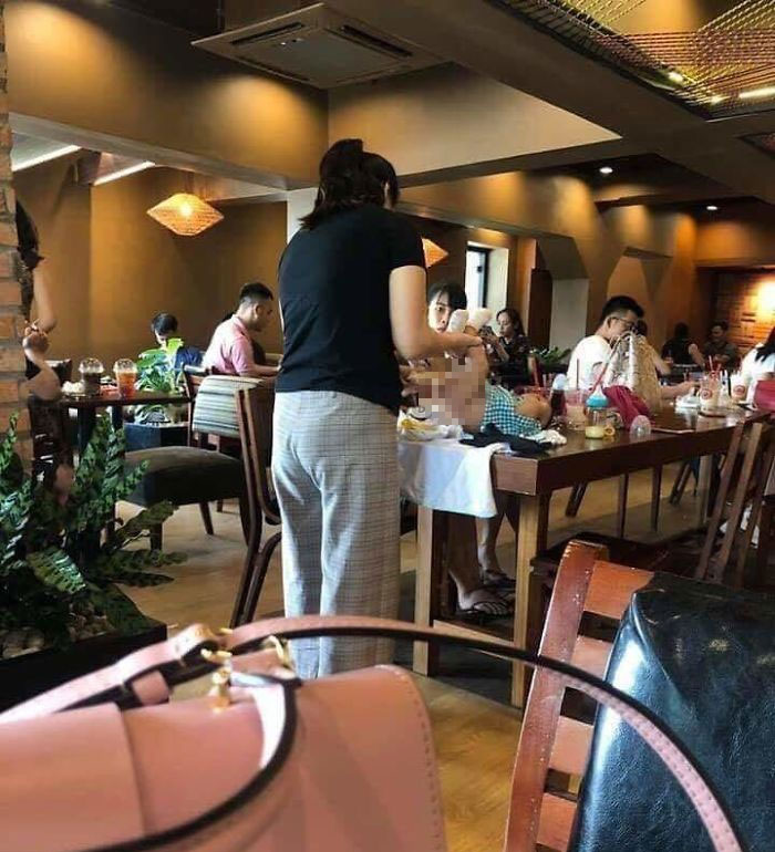 3. Oh God! Not again. Another mother who is changing her baby’s diaper but this lady has gone too far as she is doing it in a restaurant among so many people. At least think about other people’s hygiene.
