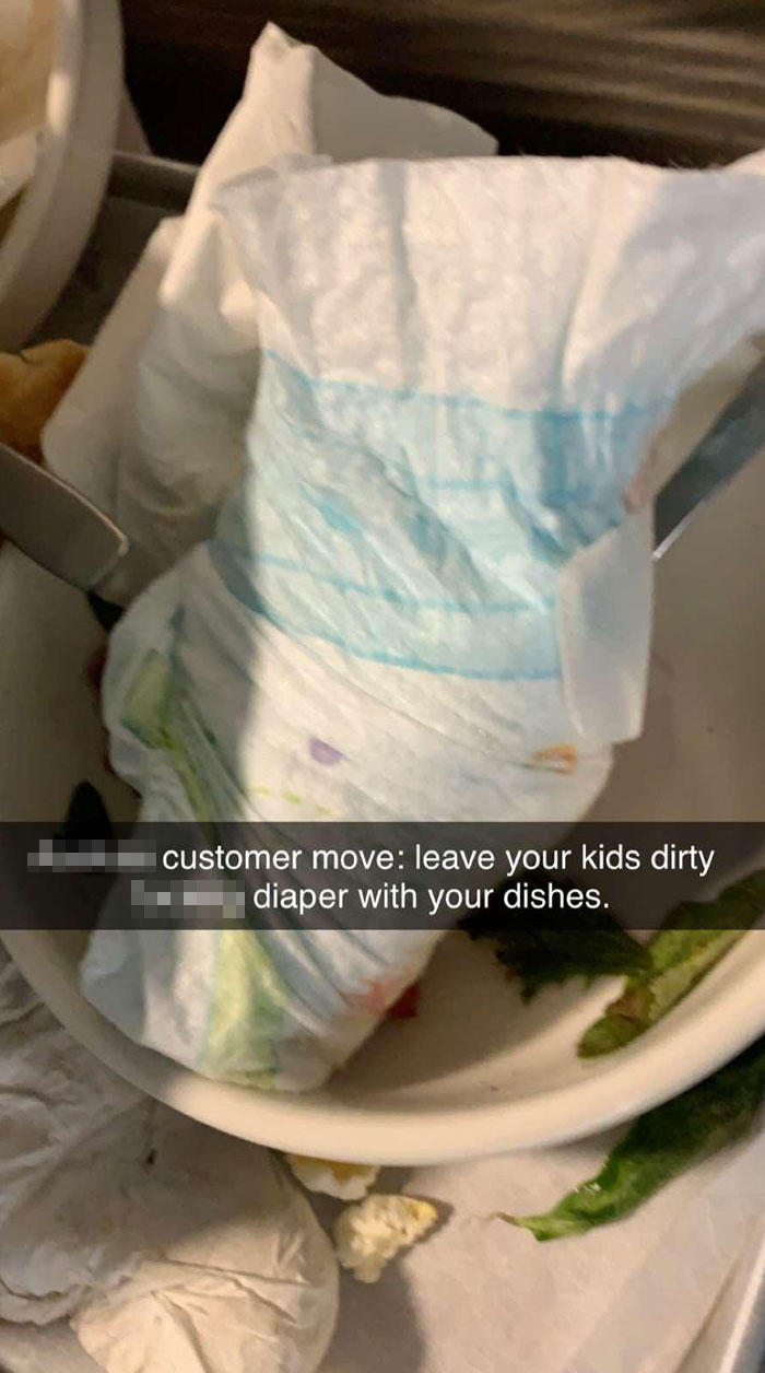 4. Wow! how irresponsible and creepy can someone be? the lady left dirty diaper of her baby in dishes after leaving a restaurant.