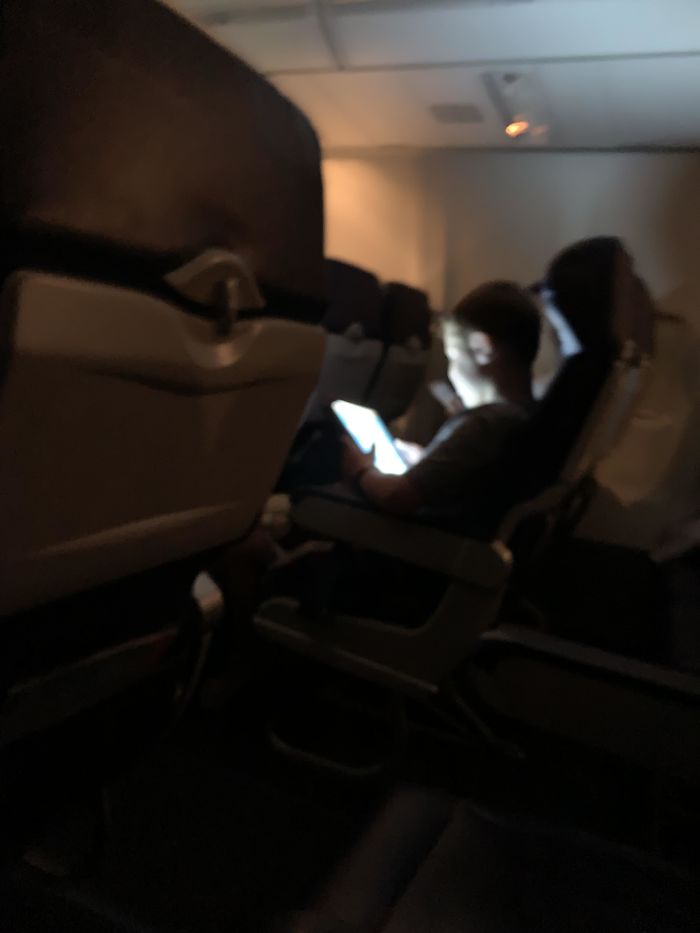 11. According to the uploader, the plane was landing and the kid was jumping and climbing on his seat.