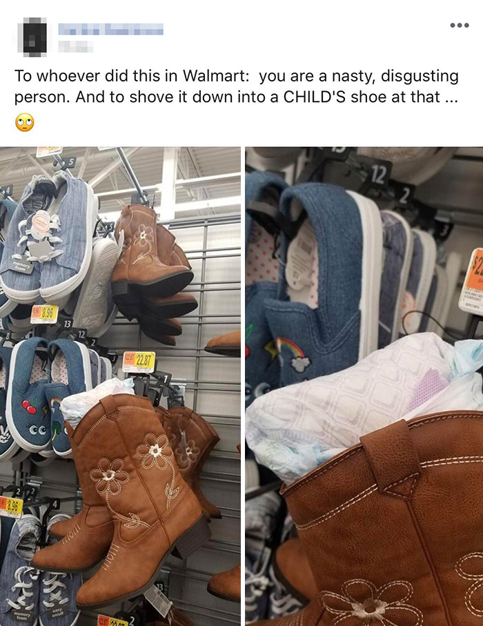 6. So, the person put a used diaper in a child’s shoe in Walmart.