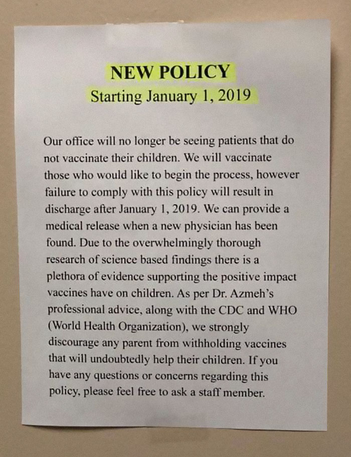 He opted for this strategy and started dismissing the patients who were themselves or their children were not vaccinated.