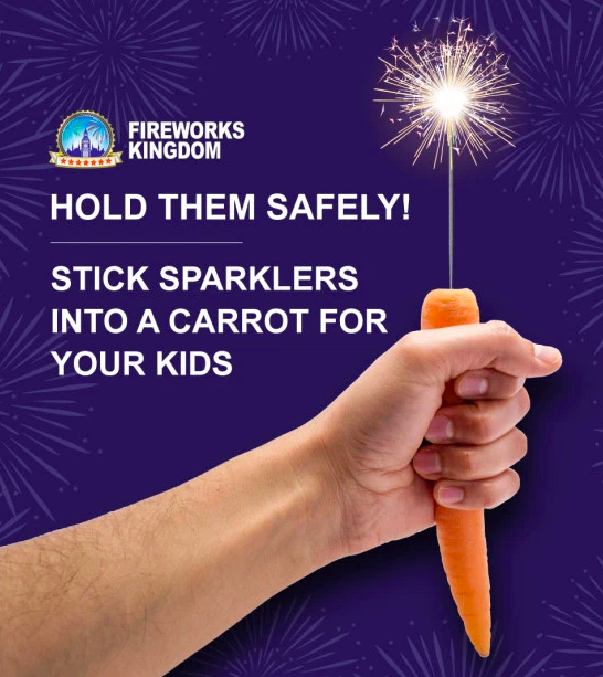 Carrot is not a conductor like the iron rod on the sparkle and does not get heated up. Also, it promotes the awareness of how important it is to keep the sparkles away from the body.