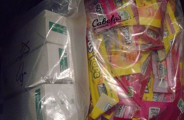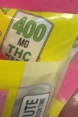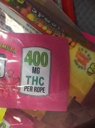 In the photos shared by the police, the drug-laced candies appear the same as originals except for a warning on the backside that says each candy is laced with 400 mg THC.