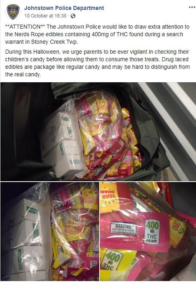As the police from Johnstown, Pennsylvania, warned, thugs might be handing out treats laced with THC to innocent kids on purpose.