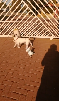Being around dogs all day, the parrot started mimicking their bark and while they were hanging out to protect their house at the front door, the bird started barking just like it would be a dog.