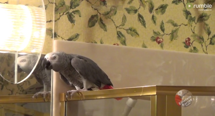 Like most people, Einstein’s owners follow a nighttime routine. In this clip, Einstein can be seen perched on top of the shower wall (one of his favorite perches aside from the kitchen and his screened-in back porch) and having a funny conversation with his owner, who he calls “Marcia Melon,” a hilarious nickname that he bestowed on her for whatever reason.