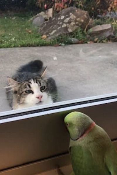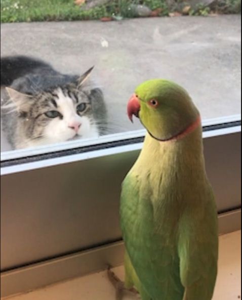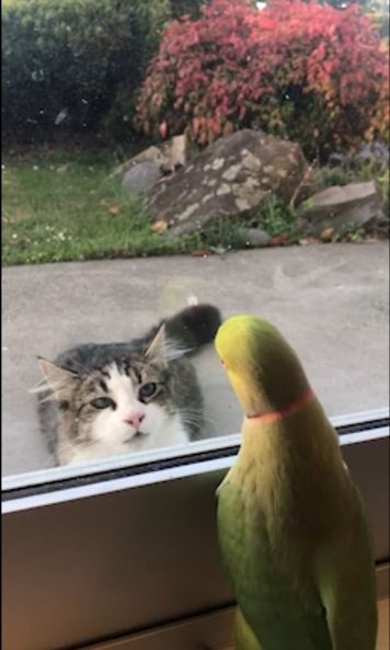 Watch the Hilarious moment parrot prays peek-a-boo with neighbor’s cat: