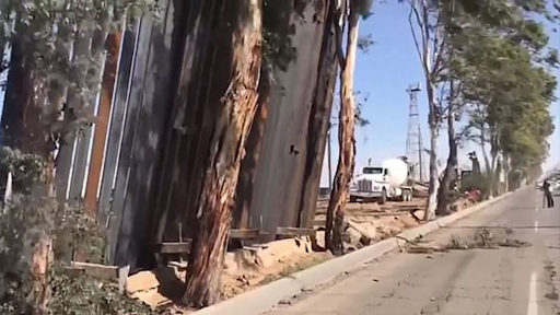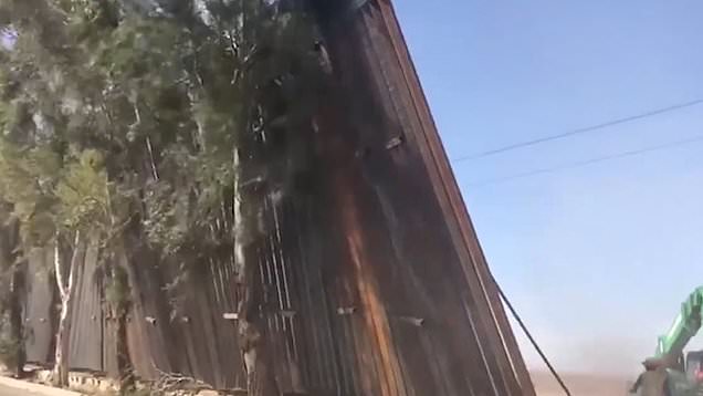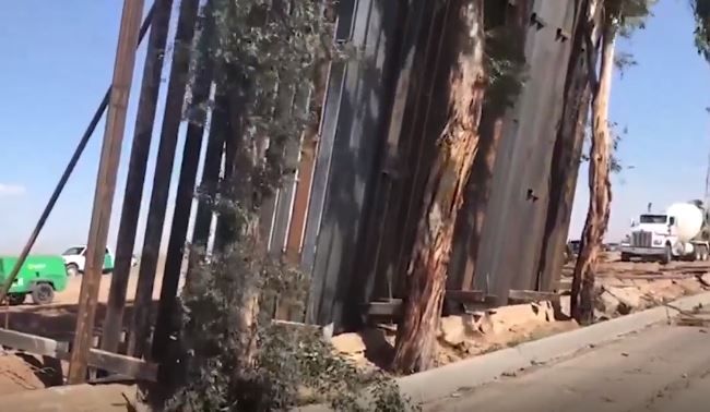 Newly installed panels from the US-Mexico border wall have fallen over due to strong gust of winds, making it lean over to the side of Mexico.