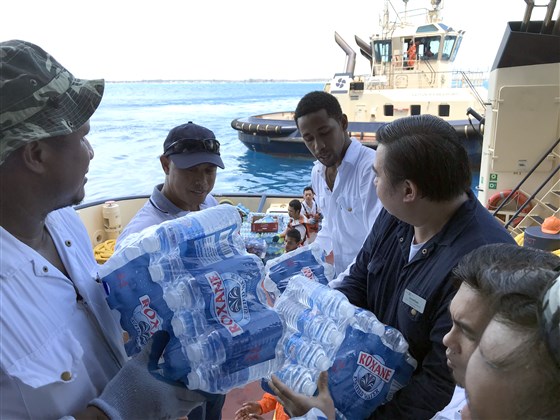 “This first supply shipment of UNICEF humanitarian items was freighted by the International Federation of Red Cross and Red Crescent Societies (IFRC) and includes over 400,000 water purification tablets, several 5,000-liter tanks for at least 2,000 people and 1,000 jerry cans,” says the organization.