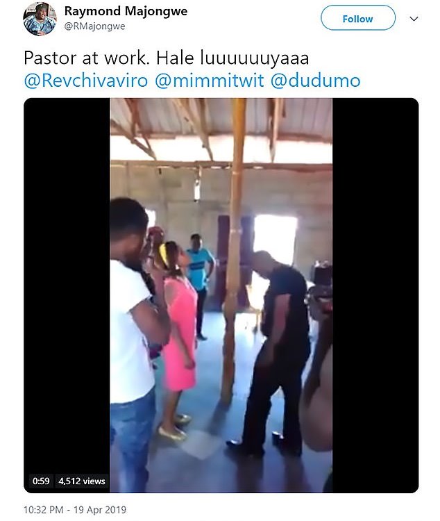 The footage was uploaded to Twitter by Raymond Majongwe who captioned his post: “Pastor at work. Hale luuuuuyaa.”