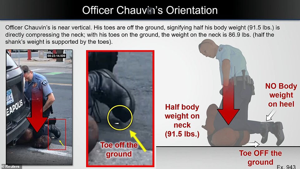 The court brings in evidence of Chauvin’s posture at the time he laid his knee against Floyd’s neck, explaining the logistics behind it. The doctor comments that “this is a death where both the heart and lungs stopped working and the point is that it is due to subdual restraint and compression,”