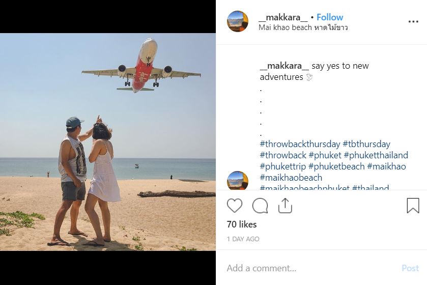The notorious beach which became a hotspot for tourists looking for an awesome photo with a plane in the background is located just next to the airport in southern Thailand.