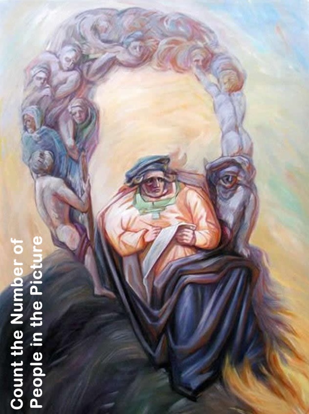 It’s time to put your observation skills to the ultimate test with a confusing painting that features a senior man. As you will quickly notice, the portrait is also home to several other people. Can you count them all?