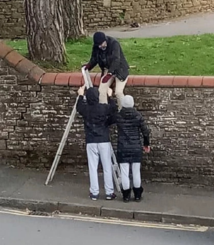 People are outraged after pictures emerged of several people using a stepladder to scale the walls of a closed park in defiance of the UK’s lockdown rules.