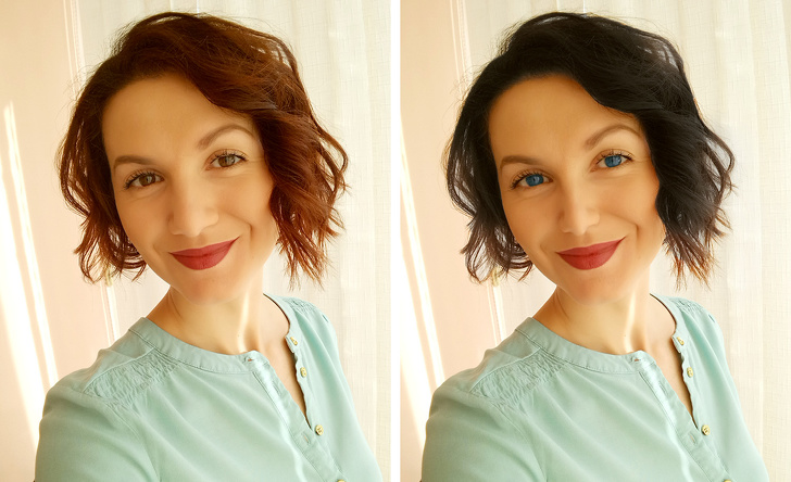 “I’d like to see myself as a brunette. Change the eye color to any other. And also the nose! A smaller and nicer nose.”