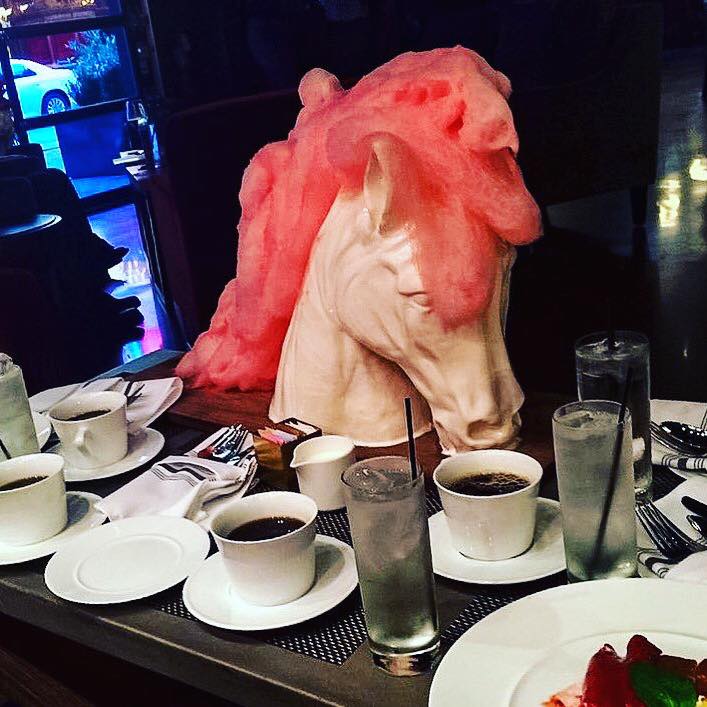 13. ”That moment when everyone else gets plates and your dessert arrives on a porcelain horse head”