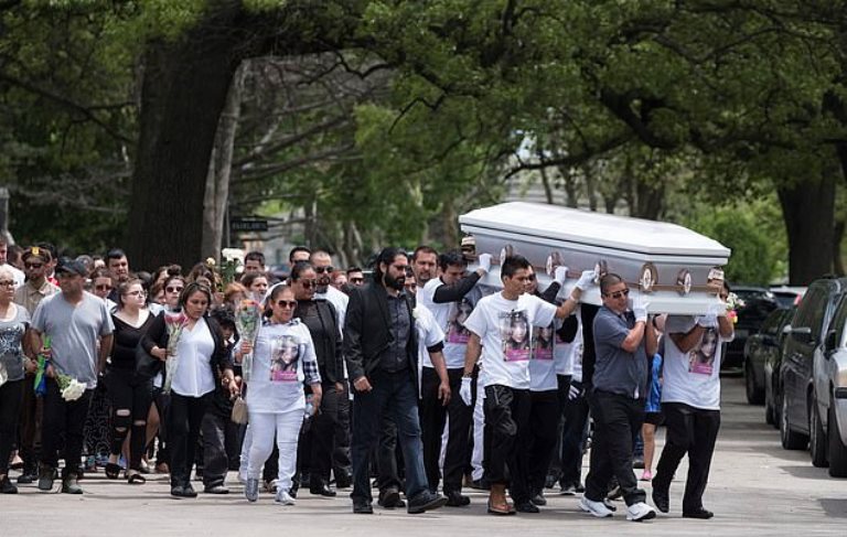 Hundreds of people attended Marlen Ochoa-Lopez’s funeral, the 19-year-old girl who was killed by a family of ‘womb raiders’ who took her unborn child by force after tricking her into visiting their home for free baby’s clothing.