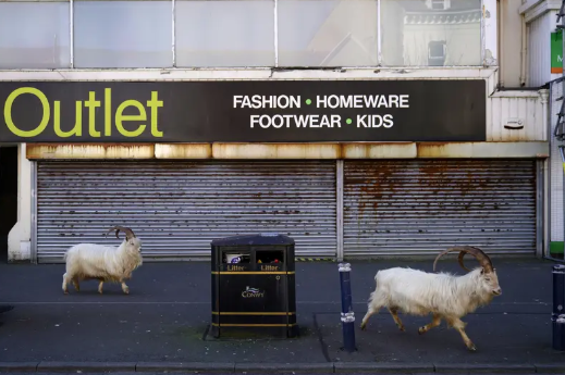 The relationship between these goats and the humans of the town has been complicated for a long time. They never even tried to co-exist in the same boundaries. But now that the humans are gone, these goats are happy to come back to the town.