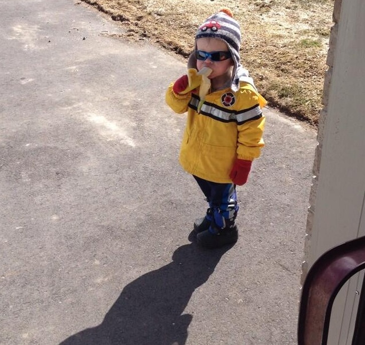 6 “This is Carter. He knocked on my door to ask if he could have a banana and then left”