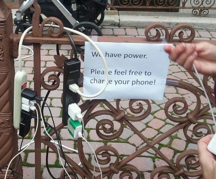 13 When a hurricane hit NYC, a lot of people lost access to electricity, and someone pulled a cable outside for people to charge their cell phones for free.