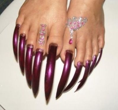 Check out the pictures of this long toenails trend below and decide yourself which one made you cringe more: