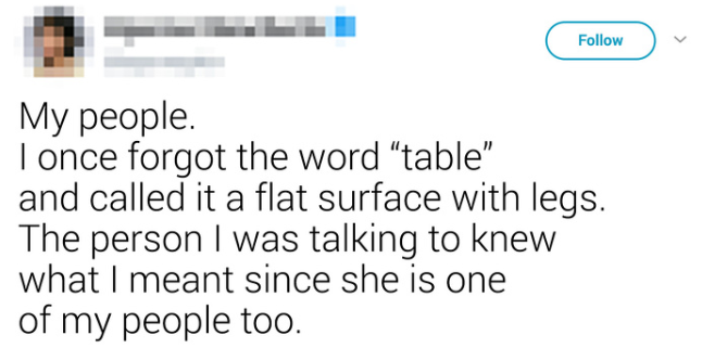 - An individual once called a “table” to be a flat surface with legs and the person he/she was talking knew exactly what that person meant.