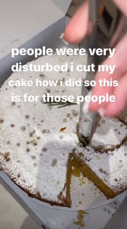 People could not stop talking about it. One said “Can we just talk about how she has cut her cake. What is wrong here?”