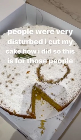 Well, Kylie is not the one to keep shut. To slap them all silent she cut another cake. And she wrote that this is for all the people who were bothered by how she cut the cake.