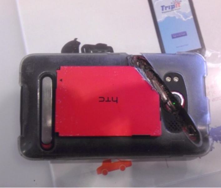 4. Smartphone saved his arteries from a chainsaw strike!
