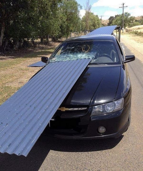 6. While the car was fairly damaged, the driver made it out unscratched! However, few inches could have cost him his head.