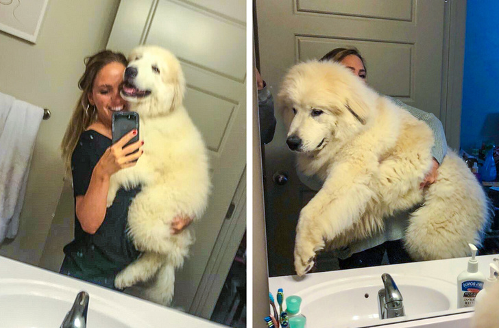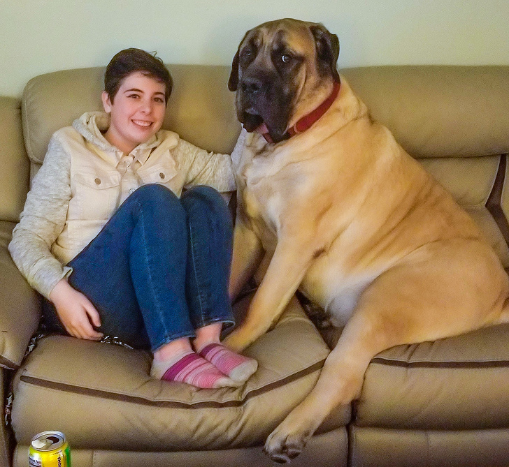 #9. More size comparison: a 5’2″ tall human and a 270 lb pupper