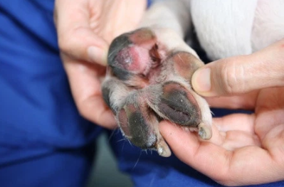 One can know if their pet suffers from painful burns if the pet is seen limping or licking their paws. Any signs of blisters, darkened or red pads on their feet also suggest burning.