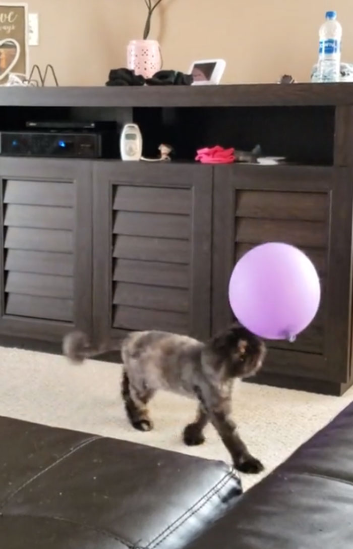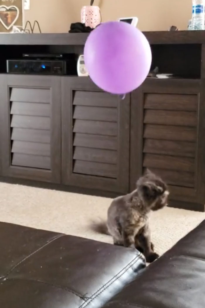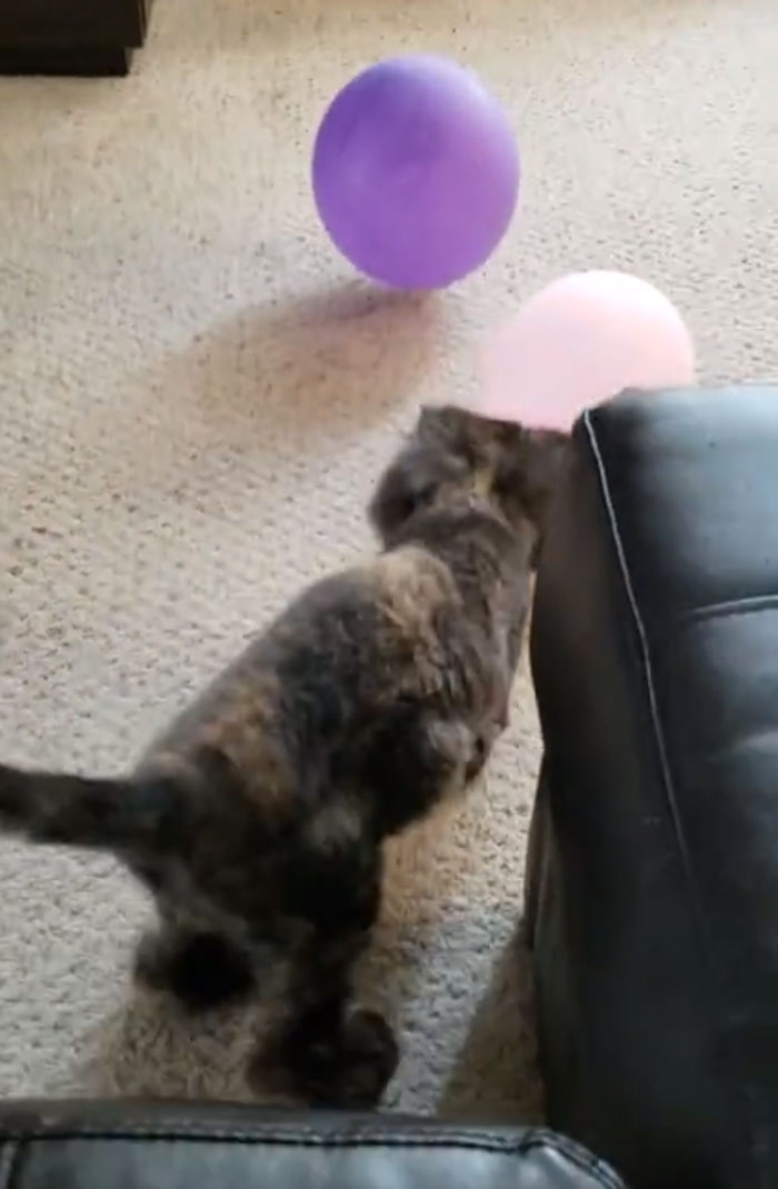 An adorable Persian cat loves playing with balloons but her skills of not puncturing or popping them are incredible.