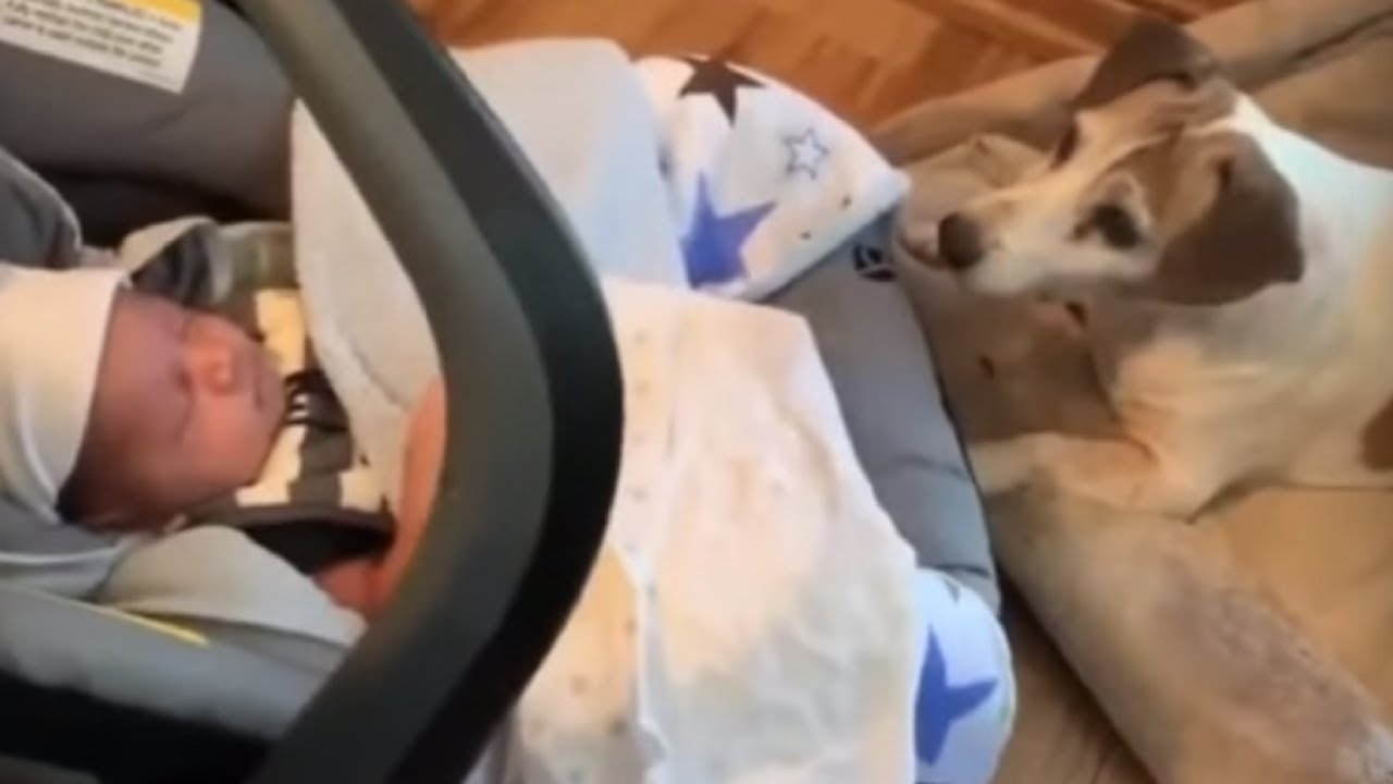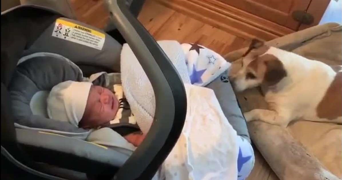 It’s adorable to see how the pets can have protective instincts towards the baby of the house.