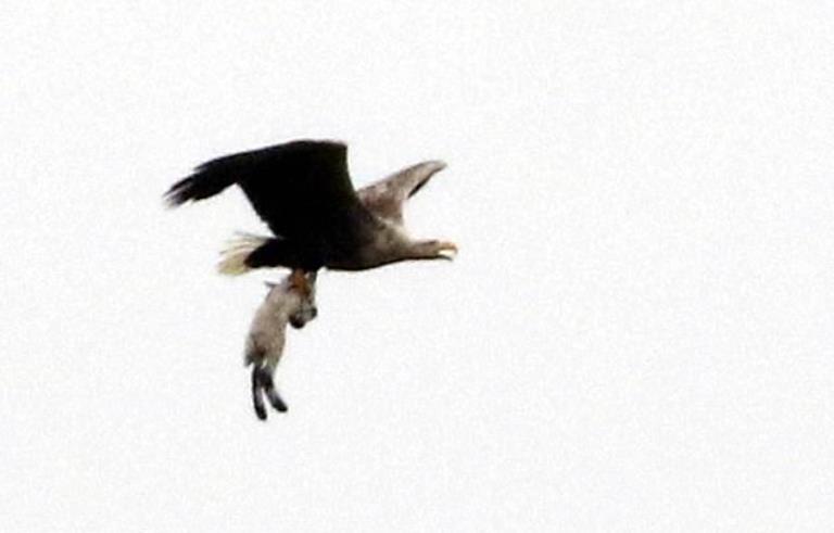 “Golden eagles take lambs all the time but nobody seems to bother until the sea eagles swoop in. Their nest is about the size of a double bed and two chicks were in it so they will be feeding well.”