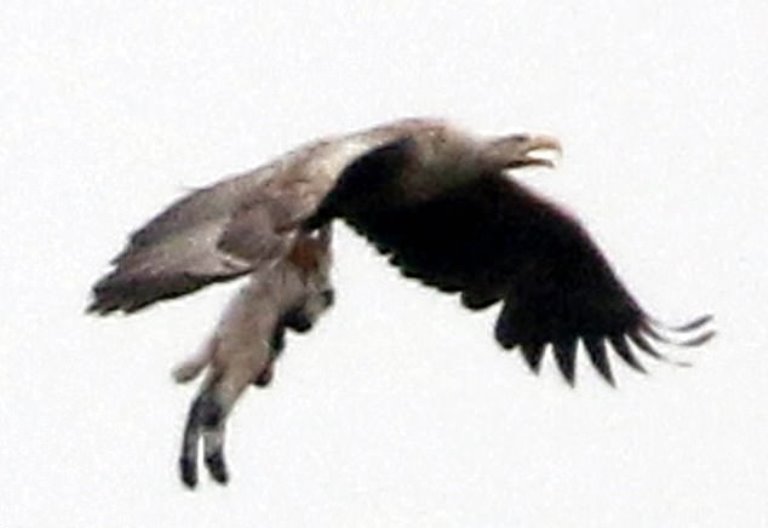 “We saw this big shape through the sky and my wife thought it was a fish,” Mr. Currie said. “We then realized it was a lamb and I rattled off a load of shots. The bird was struggling. It’s the most extraordinary sight I’ve had so far.”