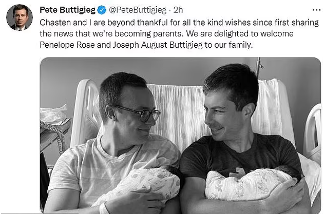 Transportation Secretary Pete Buttigieg and his husband Chasten welcome their newborn twins Joseph August and Penelope Rose.