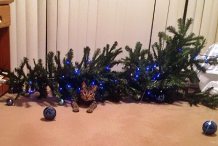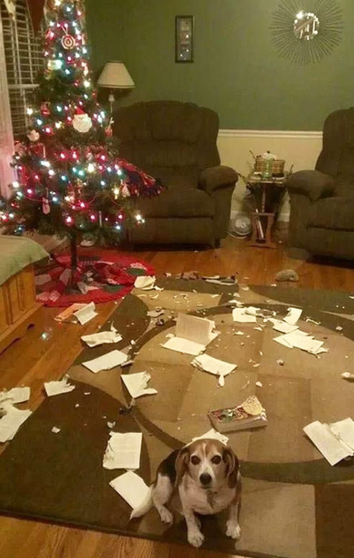 Christmas is the most happening holiday season of the year when the entire family comes together and involves in the decorations. Take a look at some hilarious photos of guilty pets ruining the Christmas decorations.