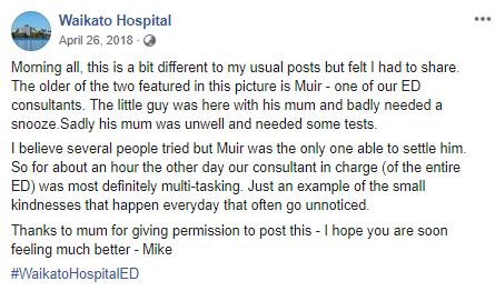 Mike Haden-Jones, a clinical nurse specialist at Waikato Hospital, shared the heartwarming photo on Facebook.